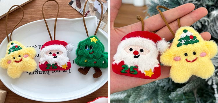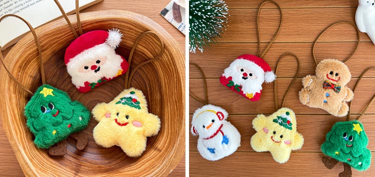 これらのクリスマスキーホルダーはすべて高品質のぬいぐるみ素材で作られており、柔らかく快適な質感、明るい色が簡単に色あせしません。それぞれに本革調の吊り紐が付属しており、より高級感があります。キーホルダーとは異なり、酸化したり色褪せたりすることがなく、小さな装飾としてバッグ、鍵、またはクリスマスツリーに結び付けることができます。