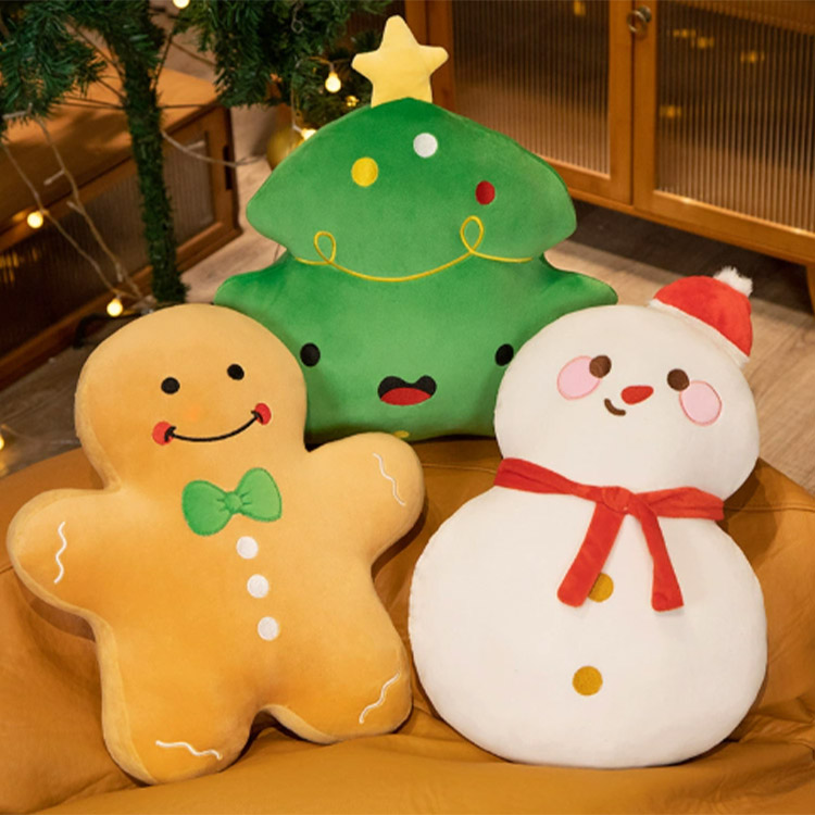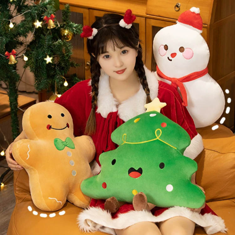 クリスマス仕様のぬいぐるみです。ジンジャーブレッドのぬいぐるみ、小さな雪だるま、クリスマスツリーなどのスタイルは非常に人気があります。生地はすべて豪華な素材で作られており、中にPP綿が詰められています。見栄えが良く、部屋の装飾に適しているだけでなく、クッションやクッションとしても使え、非常に実用的です。
